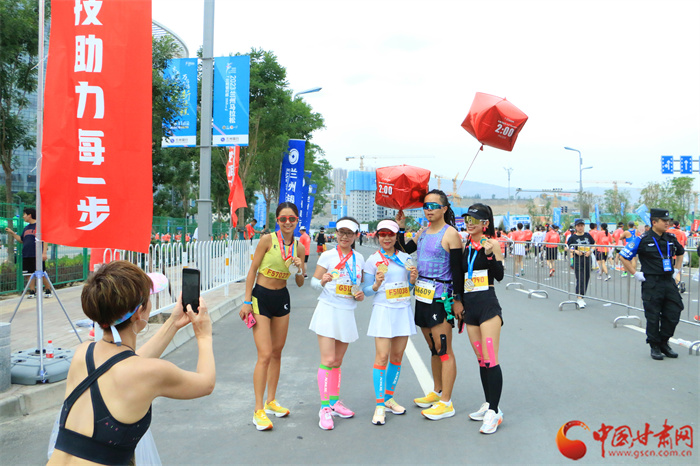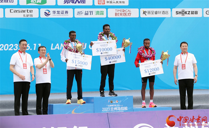 經(jīng)過兩個多小時的激烈角逐,全程馬拉松男子和女子組名次相應(yīng)產(chǎn)生。其中,男子馬拉松第一名打破了蘭馬賽會紀(jì)錄,女子馬拉松第一、二、三名均打破了蘭馬賽會記錄。