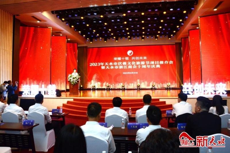 新天水訊【記者劉曉亞】6月22日,2023年天水市伏羲文化旅游節(jié)項目推介會暨天水市浙江商會十周年慶典舉行。