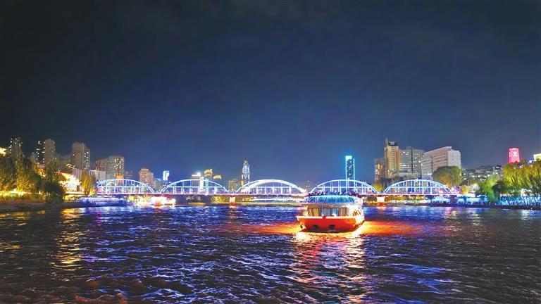 夜幕降臨,黃河兩岸璀璨霓虹逐一亮起,蘭州白塔山碼頭游船售票處、登船安檢處排起了數(shù)十米的長(zhǎng)隊(duì),“金城壹號(hào)”“悠游蘭州號(hào)”“墨跡號(hào)”等十多艘游輪載著南來(lái)北往的游客穿梭于黃河之上,為夜晚的黃河之濱添了一抹流動(dòng)的色彩。