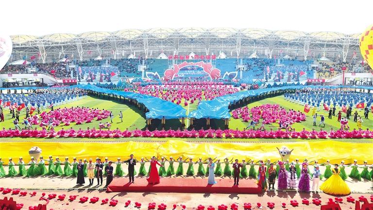 甘肅省第十屆少數(shù)民族傳統(tǒng)體育運(yùn)動(dòng)會(huì)開(kāi)幕式現(xiàn)場(chǎng)