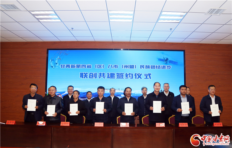 聯(lián)席會上,來自青海海北州、新疆哈密市、內(nèi)蒙古阿拉善盟,甘肅嘉峪關(guān)市、酒泉市、張掖市、武威市、金昌市等八市(州盟)的統(tǒng)戰(zhàn)民族工作部門相關(guān)負責人作了深入的交流發(fā)言。八市(州盟)民族工作部門簽訂了《甘青新蒙四?。▍^(qū))八市(州盟)民族團結(jié)進步聯(lián)創(chuàng)共建合作協(xié)議》。