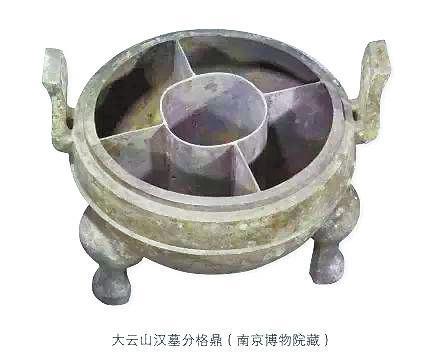 這里說的“五熟釜”,內(nèi)分?jǐn)?shù)格,開煮時,中間爐火熾烈,四周湯羹沸騰,可以同時煮熟多種食物。很像北京涮羊肉鍋和重慶九宮格的初級合體。