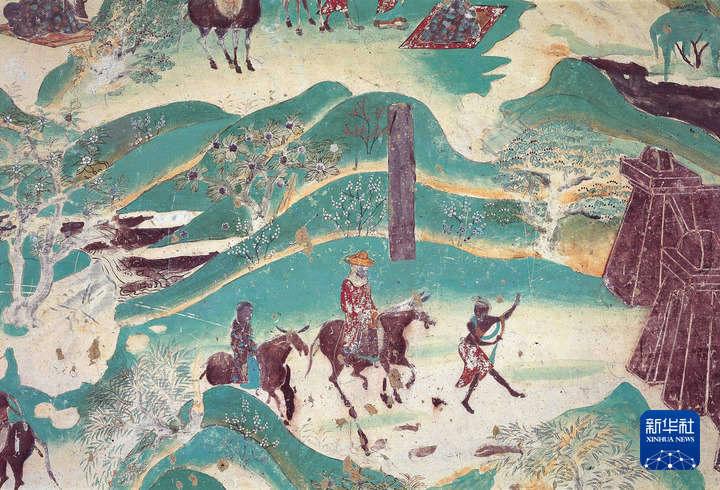 莫高窟第217窟-南壁西側(cè)-春山踏青-盛唐。(敦煌研究院供圖)