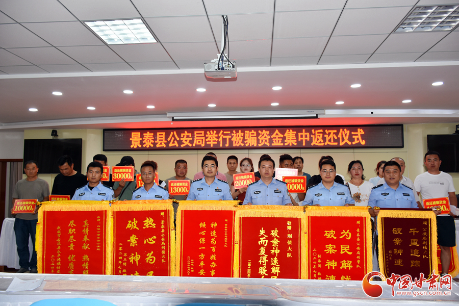 中國(guó)甘肅網(wǎng)7月10日訊(西北角·中國(guó)甘肅網(wǎng)記者程健)7月9日下午,白銀市景泰縣公安局舉行被騙涉案資金集中返還儀式,返還群眾被騙資金46.38萬(wàn)余元。
