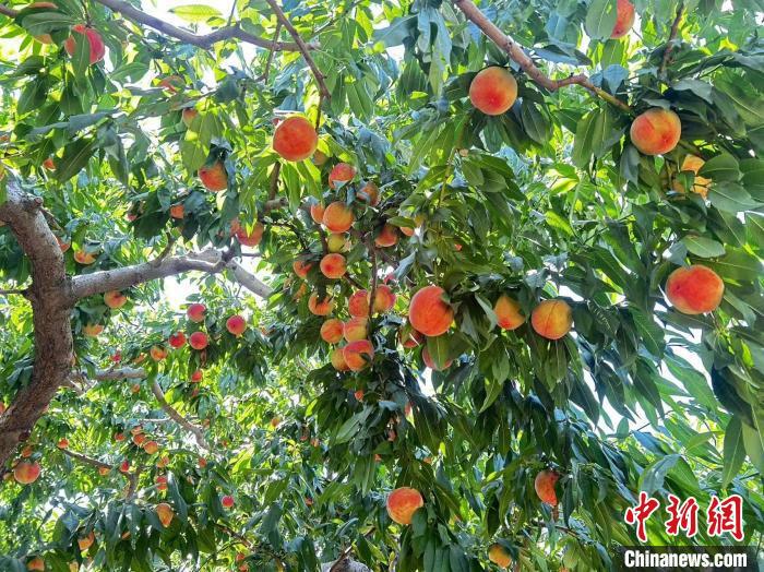 7月30日,蘭州市城關區(qū)伏龍坪街道卓家溝村,桃子掛滿枝頭。閆姣 攝