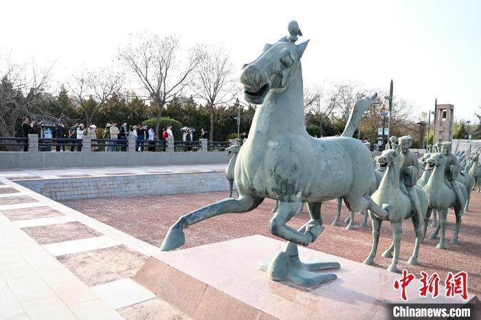 2024年4月17日,游客在中國旅游標(biāo)志“馬踏飛燕”出土地雷臺漢墓內(nèi)參觀。九美旦增 攝