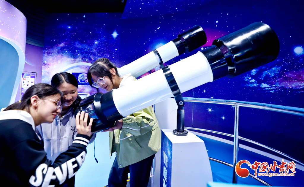 10月2日,在甘肅省張掖科技館內(nèi),科普志愿者引領(lǐng)家長和孩子們,了解宇宙星系知識,體驗電磁秋千、太空漫步VR,進行有趣的虹吸現(xiàn)象、光線投影變化等實驗,近距離感受科技發(fā)展變化的魅力,快快樂樂歡度國慶假期。