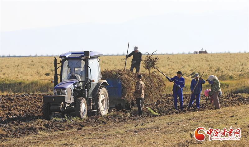 10月7日,位于祁連山腳下的張掖市民樂(lè)縣南豐鎮(zhèn)張連莊村的千畝黃芪種植基地,藥農(nóng)們忙著采收黃芪,田間地頭一派豐收的繁忙景象。