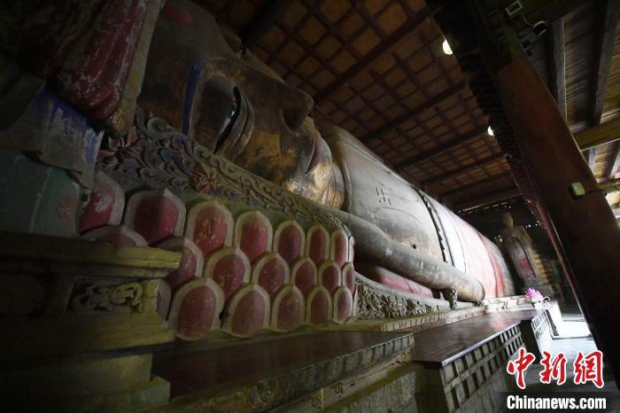 資料圖:圖為“西夏國寺”張掖大佛寺大佛殿內(nèi)的木胎泥塑臥佛。楊艷敏攝