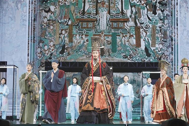 中國(guó)甘肅網(wǎng)12月11日訊 據(jù)蘭州晚報(bào)報(bào)道(記者 張鵬偉)12月7日,由中國(guó)國(guó)家話劇院院長(zhǎng)田沁鑫擔(dān)任編劇、導(dǎo)演,中國(guó)國(guó)家話劇院青年演員張藝興主演的音樂話劇《受到召喚·敦煌》正式首演,國(guó)家速滑館“冰絲帶”座無虛席,觀眾借由敦煌不斷流轉(zhuǎn)的千年時(shí)空,沉浸感受華夏歷史的恢宏與廣闊,真情為中華文化的璀璨與瑰麗而自豪。