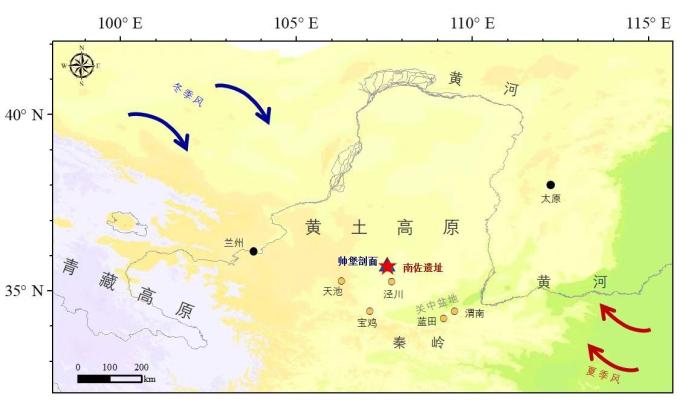 南佐遺址和帥堡剖面地理位置及所受季風(fēng)影響示意圖。韓建業(yè) 供圖