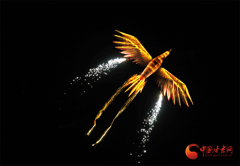 5月28日晚,五只鳳凰劃過(guò)慶陽(yáng)夜空,拉開了第二十屆慶陽(yáng)香包民俗文化節(jié)迎賓演出的大幕。傳說(shuō),周先祖不窋乘鳳凰來(lái)到慶陽(yáng)大地,教民稼穡,肇始農(nóng)耕文明之源。晚會(huì)以鳳凰于飛啟幕,串聯(lián)慶陽(yáng)的過(guò)去、現(xiàn)在與未來(lái),結(jié)合現(xiàn)代聲光電技術(shù),講述香包飄香的慶陽(yáng)故事。