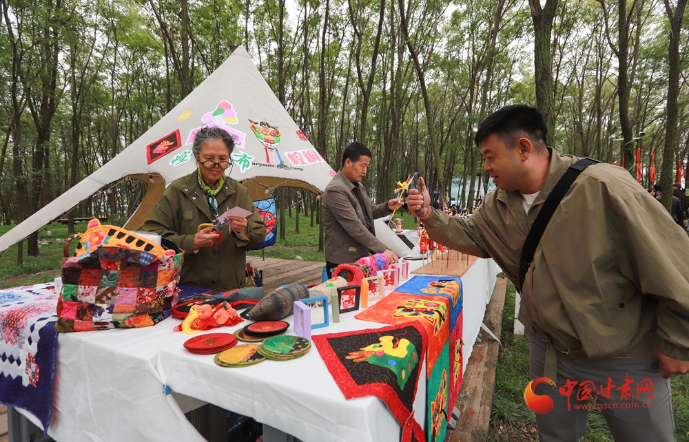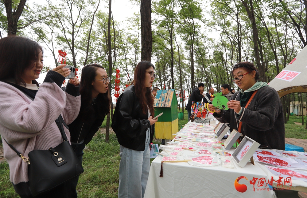 活動(dòng)現(xiàn)場還設(shè)置了非遺展示區(qū)與美食品鑒區(qū),天津剪布、面塑與崆峒剪紙、泥塑等交相輝映,羊肉泡饃、釀皮、油馓子等鄉(xiāng)土美食香氣四溢,讓現(xiàn)場觀眾愛不釋手。