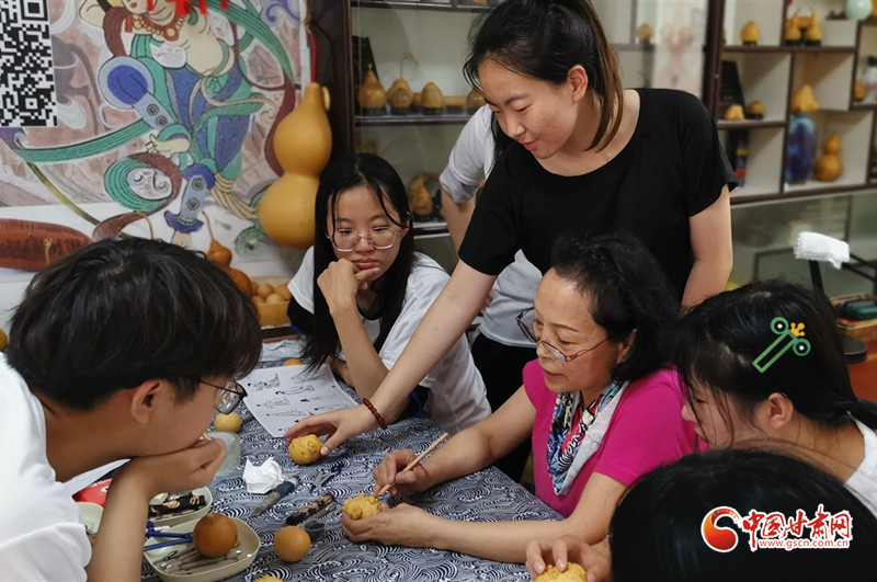 她還走進蘭州開放大學,為熱愛刻葫蘆的老年人手把手地傳授技藝,耐心細致地指導他們?nèi)绾卧谛⌒〉暮J上刻畫出精美的圖案。