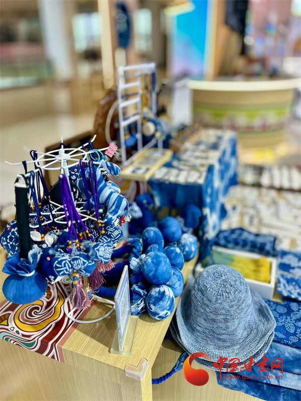 染好的布匹還要經(jīng)過(guò)脫漿、清洗、陰干,最后才是拆線、整理。當(dāng)一塊完整的藍(lán)印花布展現(xiàn)在眼前時(shí),李梅總會(huì)輕輕撫摸布料,仿佛在與草木對(duì)話。她的工作室里,掛滿了用藍(lán)染制成的物件:桌布上印著成片的板藍(lán)根葉,茶席邊緣綴著小巧的藍(lán)染布扣,就連她日常穿的棉麻衫,也是自己染的淡藍(lán)色。“這些布不是冰冷的商品,是帶著土地溫度的生活。”李梅說(shuō),去年她在平?jīng)龉懦情_了一間“藍(lán)染生活館”,游客可以跟著她學(xué)種板藍(lán)根、體驗(yàn)扎染,很多人第一次發(fā)現(xiàn),原來(lái)衣服上的藍(lán)色可以來(lái)自田野,非遺技藝能如此貼近日常。