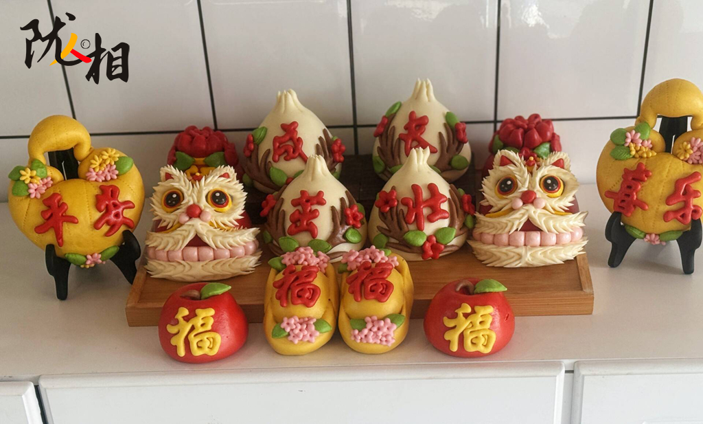 和面、上色、造型、醒發(fā)、蒸制……指尖翻飛間,一道道工序有條不紊,一只憨態(tài)可掬的生肖龍醒獅花饃便在蘇娜手中悄然成型。