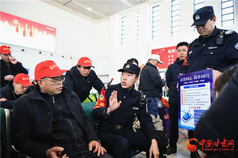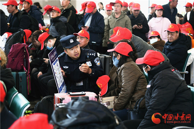 這批務(wù)工人員來自定西市各縣區(qū),既有復(fù)崗務(wù)工人員也有新聘崗務(wù)工人員,為鋪就這條溫暖返崗路,蘭州鐵路公安處定西北站派出所積極與定西北車站、客運(yùn)部門通聯(lián),專門開辟綠色通道,暢通進(jìn)站、安檢、檢票等進(jìn)站環(huán)節(jié),劃定專門候車進(jìn)站區(qū)域,同時(shí),增派警力逐一引導(dǎo)務(wù)工人員有序進(jìn)站,幫助提拿大件行李,講解防范電信詐騙小妙招,進(jìn)一步保障了務(wù)工團(tuán)體旅客乘車安全。