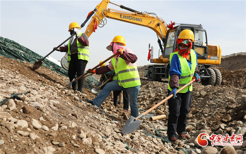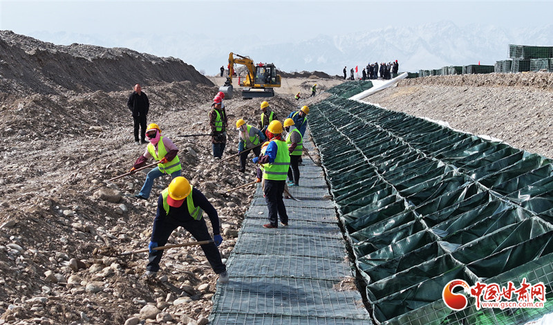 民樂縣大堵麻河防洪治理工程項(xiàng)目施工現(xiàn)場,工人們正在緊張有序地修筑河堤