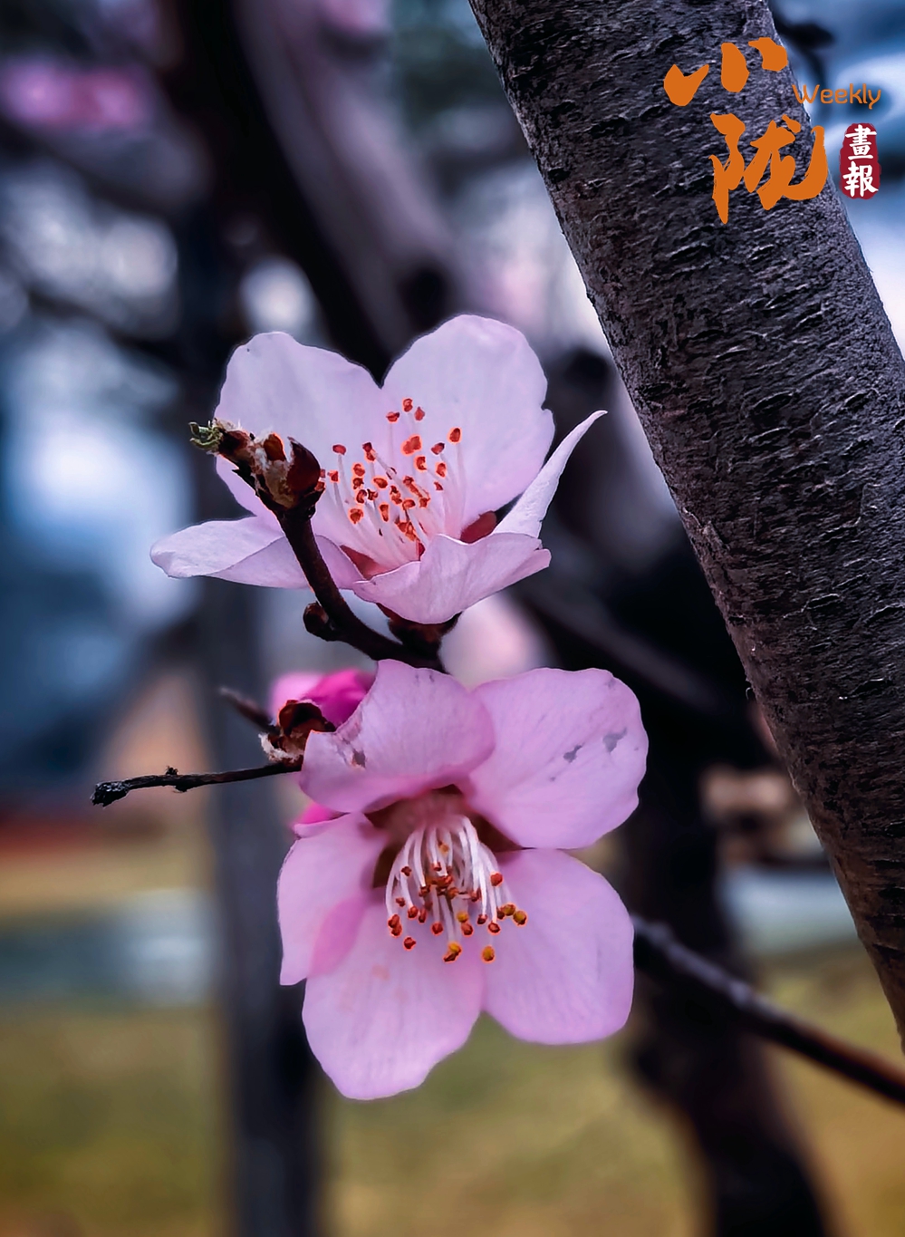 粉艷桃花綴滿枝頭,柔粉的花瓣舒展著春日的嬌柔,細(xì)密的花蕊攢著春日的靈動(dòng),虬曲枝椏襯著朦朧背景,將春色渲染得格外動(dòng)人。