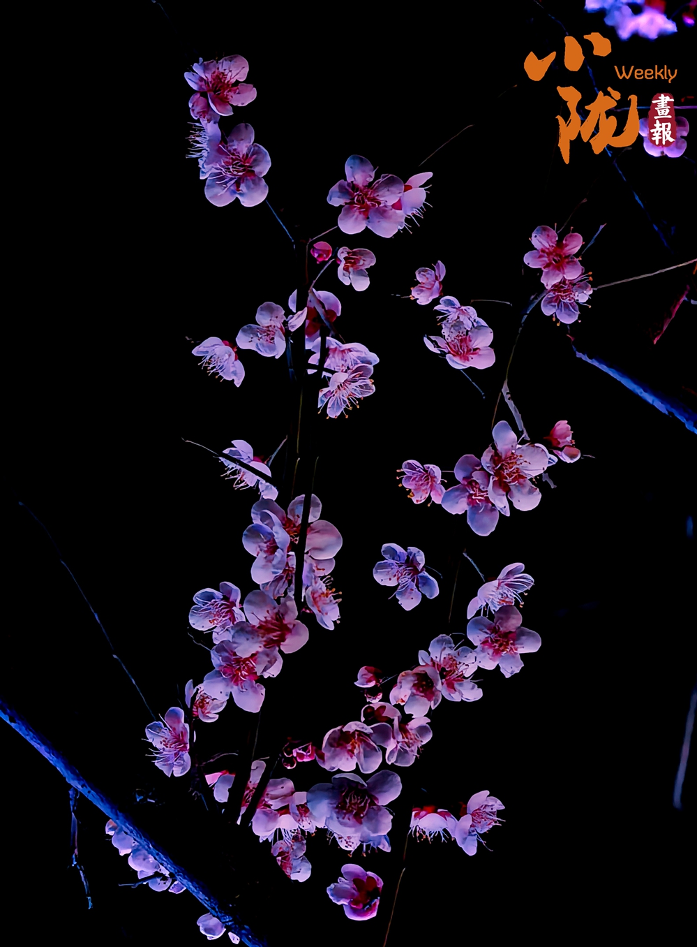 粉白梅花綴滿枝椏在深色背景的映襯下,花瓣柔粉輕透,花蕊點(diǎn)點(diǎn)橙紅,疏朗的枝條托著簇簇花影,為靜謐的街巷流淌出清雅而堅(jiān)韌的春日情致。