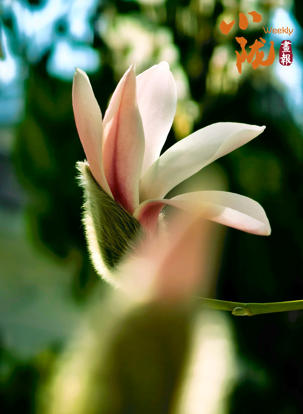 玉蘭花悄然綻放,花瓣外白內(nèi)粉,姿態(tài)溫婉,花萼上細(xì)密的絨毛透著春日的鮮活,一樹清新花影,盡顯高潔雅致。