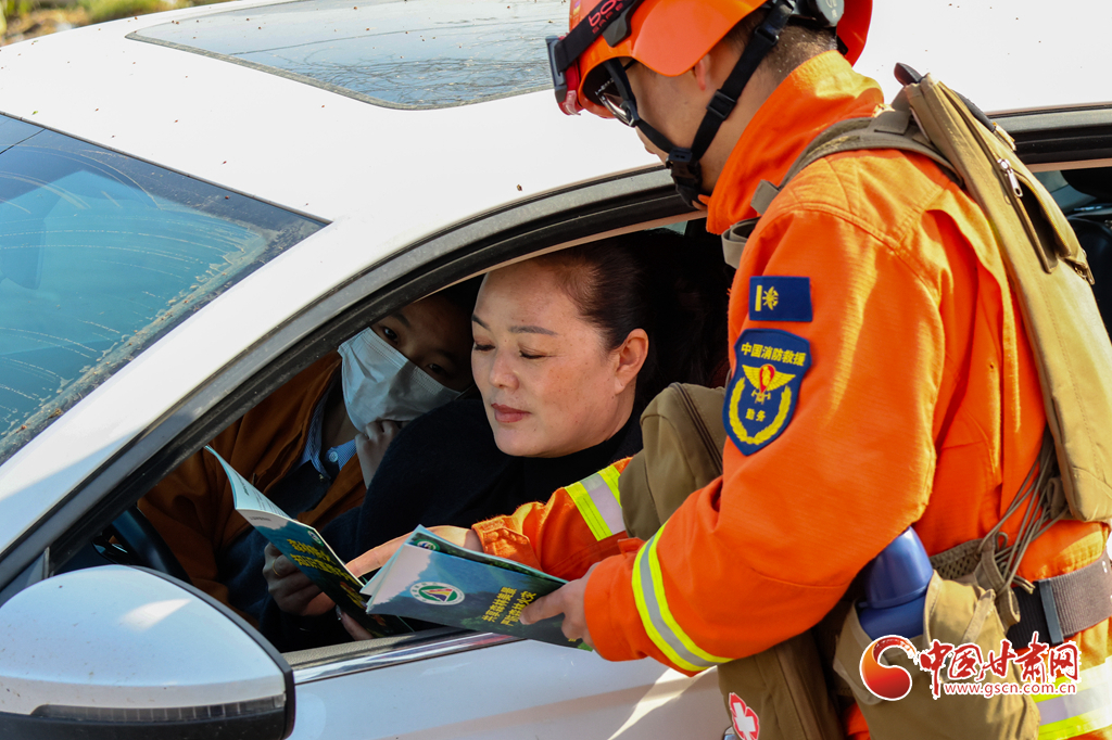 甘肅消防救援機動總隊蘭州支隊消防救援人員向進山群眾普及防火常識