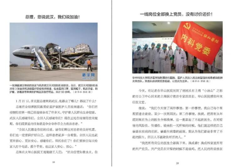 《2020:中國戰(zhàn)“疫”日志》一書以日志的形式,記錄了2020年1月23日到2月23日期間,中國每一天的戰(zhàn)“疫”故事:廣大醫(yī)護人員沒有遲疑、沒有退卻,和死神賽跑,與病毒抗爭,為生命接力;堅持工作的人民警察、外賣員、環(huán)衛(wèi)工人、快遞員、志愿者……穿梭在城市的每個角落,守護著自己的城市;許多媒體記者冒著被感染的風(fēng)險,深入一線采訪報道……