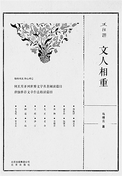 就本書作者馬靖云的潛質(zhì)和文筆來說,她不應(yīng)該只提供136千字的《文人相重》就戛然而止,她還應(yīng)該有續(xù)篇。而今,她雖然年過九旬,卻還思維敏捷,記憶鑿鑿,筆力遒勁。就文學(xué)所而言,依然以科研為視角,至少還有兩方面的人可書寫,而且有價(jià)值、有市場。一是從延安來的、從解放區(qū)來的老革命,如王平凡、唐棣華、朱寨、賈芝、力揚(yáng),他們或當(dāng)領(lǐng)導(dǎo),或?yàn)閷W(xué)者,稍加發(fā)掘,均可能得富礦;二是一大群中青年學(xué)者的涌現(xiàn),如曹道衡、胡念貽、劉世德、陳毓羆、蔣和森、錢中文、樊駿、袁可嘉、陳冰夷、柳鳴九、陳燊、董衡巽,等等,無不學(xué)有專攻,有故事,記錄下來,就精彩,甚至就是詩。