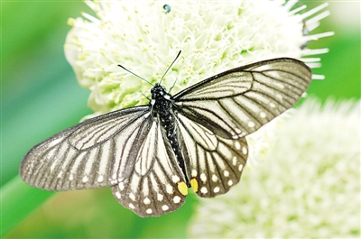 我最先注意到的,是一只半透明的黑色蝴蝶,看上去很像斑蝶,又總覺得有什么地方不對。后來知道了,它就是小黑斑鳳蝶。它擬態(tài)有毒的斑蝶,能讓部分天敵避而遠(yuǎn)之。如果這是一個設(shè)計(jì)或安排的話,那可真是巧妙。