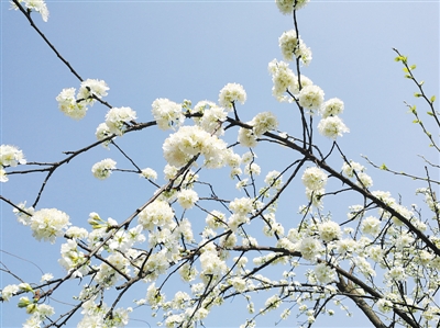 這棵早李很矮小,還沒有我的個子高。我還有一棵李樹,是江安李,樹齡有15年,就高大多了。一個月以后,江安李就會開花了。不像早李開花這么羞澀,它一大團(tuán)一大團(tuán)地開,在藍(lán)天之下就像燦爛的積雪。這兩棵李樹的先后開花,正是春天巨人淺一腳深一腳踩過我的小花園留下的腳印,前一腳淺,后一腳深。無論深淺,雁過留影,都會濺起美麗的白霜或積雪。而且,這腳印還深深地留在每朵李花的子房里,先開的早李苦澀,后開的江安李甜美,它們記錄了春天里的掙扎和怒放。