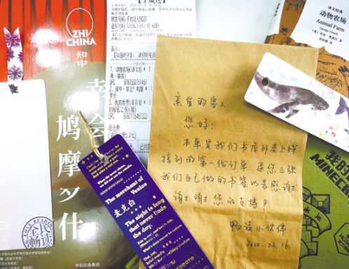 書(shū)店人為外賣(mài)訂單寫(xiě)下溫暖留言。美團(tuán) 供圖