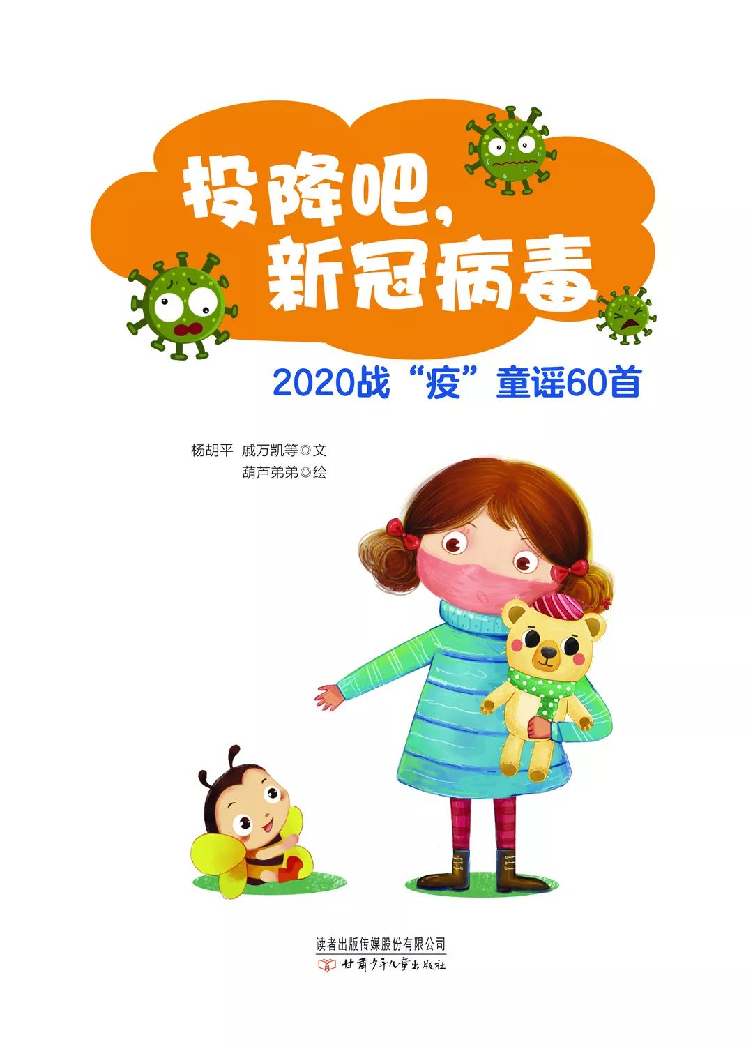 讀者出版?zhèn)髅焦煞萦邢薰舅鶎俑拭C少年兒童出版社積極響應、主動作為,聯(lián)合“葫蘆文產(chǎn)”,策劃了《投降吧,新冠病毒——2020戰(zhàn)“疫”童謠60首》一書,將這些優(yōu)秀的童謠作品進行編輯加工,以期提高兒童科學防護意識,幫助大家堅定抗“疫”勝利的信心。本書通過數(shù)字版向讀者免費推送,為打贏這場疫情防控阻擊戰(zhàn)貢獻一份力量。