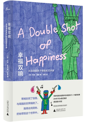 書名《幸福雙響》(A Double Shot of Happiness),來自蒂姆最愛的創(chuàng)作之一。朱迪用優(yōu)美且感人肺腑的筆觸,訴說著蒂姆漫長的人生旅程——從被診斷為重度自閉癥患者到嶄露頭角成為備受推崇的藝術(shù)家,以及一個(gè)能夠愛人與被愛的年輕人。