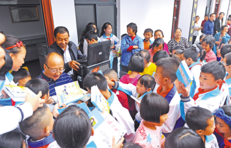 作家深入湖北谷城縣廟灘鎮(zhèn)黃畈村農(nóng)家書屋開(kāi)展圖書簽贈(zèng)導(dǎo)讀活動(dòng)。