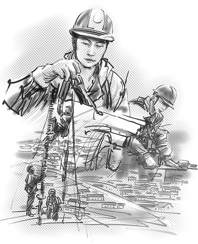 就個(gè)人條件而言,胡洪煒一米八的身高其實(shí)并不適合帶電作業(yè),但三年軍營(yíng)練就的結(jié)實(shí)精壯以及先天的敏捷機(jī)靈完美地補(bǔ)充了身高的短板。多年之后,閆旭東依然清晰地記得徒弟曾經(jīng)帶給他的震撼。帶電作業(yè)兩大危險(xiǎn),一是高空,一是帶電。軟梯是電力人得以騫翮遠(yuǎn)翥的依傍,可攀爬軟梯卻一度打濕了胡洪煒振翅欲飛的翅膀。新員工入職培訓(xùn)的訓(xùn)練場(chǎng)上,別人用一個(gè)月已經(jīng)熟練掌握了技巧,笨鳥(niǎo)胡洪煒卻剛剛及格。氣喘吁吁地爬到基塔的頂端,將自己蟄伏在離地面幾十米高的電線(xiàn)上,想像自己是一只俯瞰大地的鳥(niǎo)雀,一只暫時(shí)休整的雨燕,抑或是被印刷在音樂(lè)課本上的音符。音符在胡洪煒耳邊輕聲吟唱:我要飛得更高,更高!