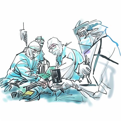 醫(yī)生在搶救新冠患者 郭紅松繪