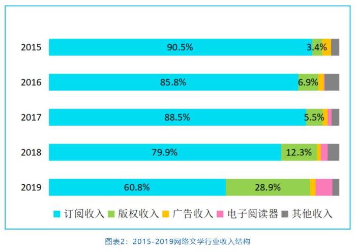 相較于往年,網(wǎng)絡(luò)文學(xué)行業(yè)的收入結(jié)構(gòu)則出現(xiàn)變化。