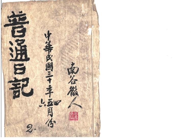 金城古玩城軒潤堂主人馬先生,近日重金收購一冊裴建準《普通日記》,行書寫本,雙頁折疊裝訂,凡66面。面長31厘米,闊24厘米。每面十行字,行22、23、24字不等。封面題三行字:左上題“普通日記”四大字,下題阿拉伯數字“2”;中題“中華民國三十年四、五、六月份”;右題“南谷山人”,鈐“裴建準印”白文印。何以稱《普通日記》呢?他是否還有其他《日記》待考。