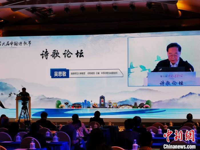中新網(wǎng)成都11月2日電(單鵬) 第六屆中國詩歌節(jié)“詩歌論壇”2日在成都舉行,百余位國內(nèi)著名詩人、詩評家、學(xué)者及部分詩歌刊物主編在論壇上開展學(xué)術(shù)交流與觀點碰撞。其中,“抗疫詩歌”被頻頻提起。