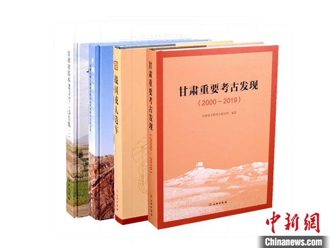 圖為由甘肅省文物考古研究所編著的《甘肅重要考古發(fā)現(xiàn)(2000~2019)》《甘肅省基本建設(shè)考古報告集(一)》《絲綢之路與秦漢文明——絲綢之路與秦漢文明國際學(xué)術(shù)研討會文集》《戰(zhàn)國戎人造車》四部考古著作。甘肅省文物考古研究所供圖