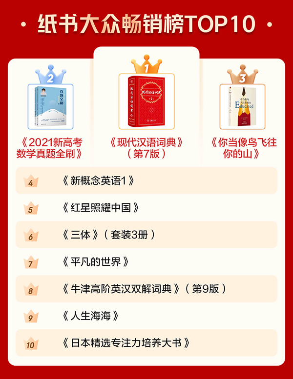 高考是中國(guó)大多數(shù)學(xué)生的必經(jīng)之路,想要從萬(wàn)人中脫穎而出,需要付出許多的努力。從京東圖書(shū)數(shù)據(jù)不難看出,攻克數(shù)學(xué)難關(guān)已成為萬(wàn)千學(xué)子的重要任務(wù),在2020年最暢銷的大眾新書(shū)和最暢銷的大眾紙書(shū)中,《2021新高考數(shù)學(xué)真題全刷》分別排名第一、第二。