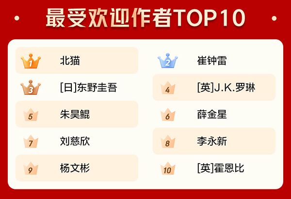 這些搜索熱詞同樣帶動(dòng)了相關(guān)圖書(shū)的銷售。兒童書(shū)作家北貓和崔鐘雷成為京東圖書(shū)2020年最受歡迎作者的第一名和第二名。在“哈利·波特”和“三體”成為熱搜詞的同時(shí),作家J.K.羅琳和劉慈欣也入圍京東圖書(shū)2020年最受歡迎作者TOP10。
