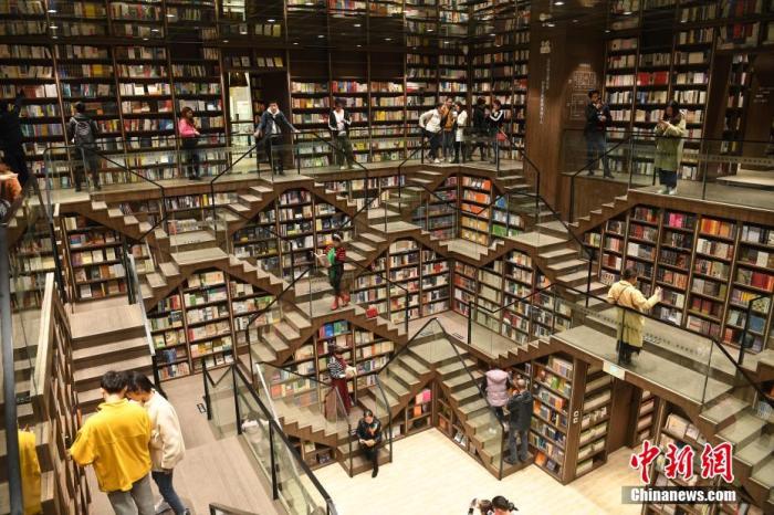 資料圖:重慶九龍坡區(qū)商圈內(nèi),一書店因設(shè)計(jì)感非常獨(dú)特,吸引了不少民眾前來(lái)打卡玩耍。陳超 攝