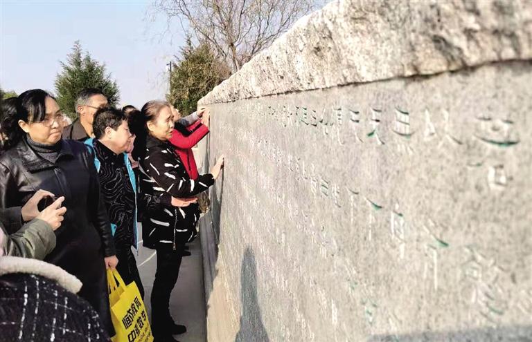 活動中,我市50多名視障讀者應邀在50多名志愿者的攙扶和引導下走進了蘭州國學館,開始了這場雙手“觸摸”國學之旅。講解員分兩組帶領(lǐng)著大家參觀了蘭州國學館,在他們溫暖、親切的嗓音里,國學館的風情樣貌逐漸在視障讀者的心中變得愈發(fā)清晰。一路上,工作人員還不斷鼓勵他們用身體去觸摸影雕、浮雕、線刻等,用指尖近距離感受著國學精粹的無比魅力。參觀完畢后,視障讀者們舉行了國學經(jīng)典交流與分享活動,在暢所欲言中表達了內(nèi)心的激動和喜悅。