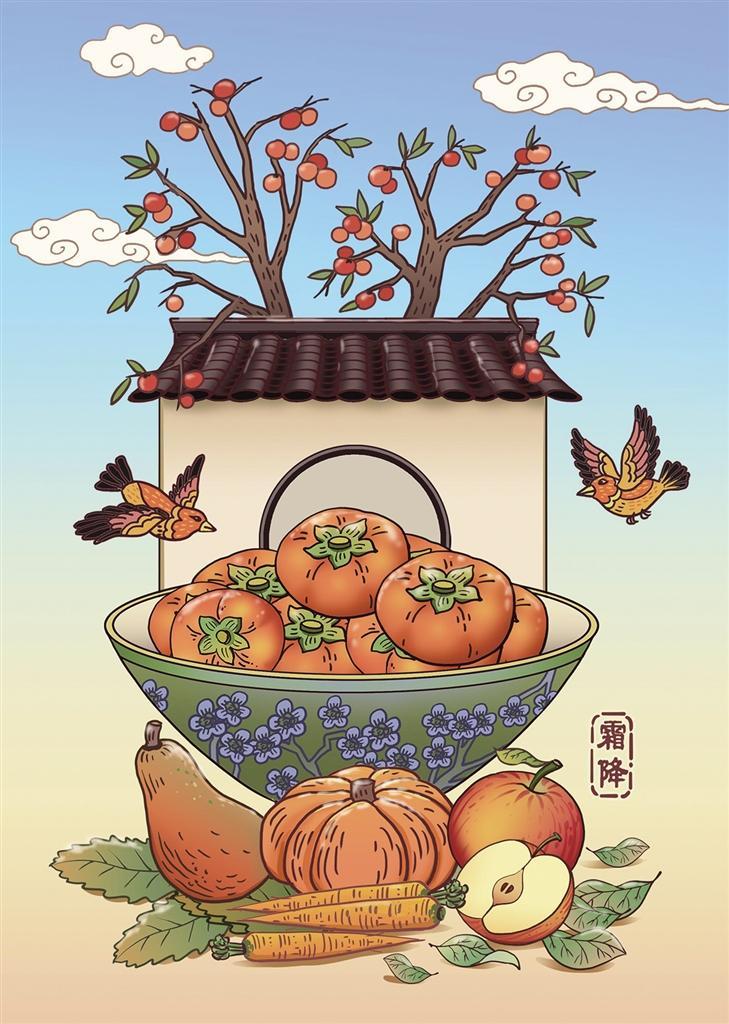 “天氣也如花語(yǔ)一般,有著未約定卻俗成的含義。”宋英杰對(duì)霜降節(jié)氣的解讀十分生動(dòng):“‘秋風(fēng)蕭瑟天氣涼,草木搖落露為霜。’霜降物候,草木黃落,蟄蟲(chóng)俯,該飄零的飄零,該潛藏的潛藏。但霜色意濃,秋之,反倒是秋季最多彩的時(shí)期。”