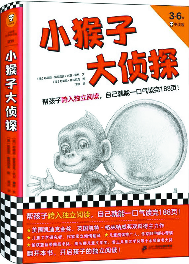 《小猴子大偵探》是本“欺騙性”很強(qiáng)的書,第一次讀到時(shí),我真的被騙到了!聽說是《造夢的雨果》作者的新作,我完全沒理會(huì)這本書的介紹,就迫不及待地翻開來。好家伙,共有5章,差不多200頁,我心想,總得一兩個(gè)小時(shí)才能讀完吧。正當(dāng)我擺開架勢,準(zhǔn)備好好享受童書鬼才塞茲尼克和塞林的新作時(shí),翻著翻著,大概六七分鐘吧,嗯——居然就翻到了最后一頁!天哪,我當(dāng)時(shí)想,這是怎樣的一本書??!不對,這真的是一本書嗎?