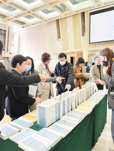 中場(chǎng)休息,與會(huì)專家學(xué)者圍著叢書(shū)第一輯熱烈交談。