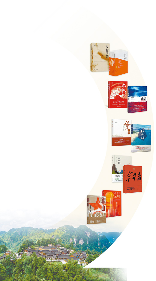 書影圖片從上至下依次為《鄉(xiāng)村國是》《人世間》《牽風(fēng)記》《北上》《海邊春秋》《經(jīng)山?!贰对浦杏洝贰陡锩摺贰稙槭裁词巧钲凇贰犊可健?。資料圖片