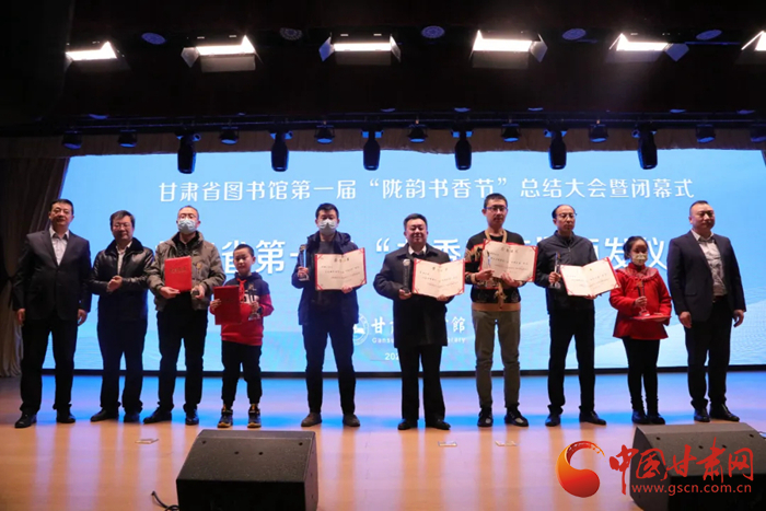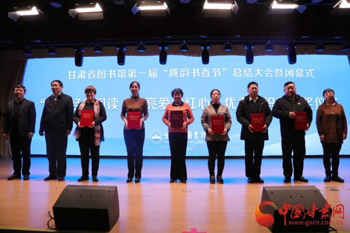 中國(guó)甘肅網(wǎng)12月28日訊(本網(wǎng)記者 張?zhí)m琴 通訊員 吳鵬)12月27日,歷時(shí)8個(gè)月的甘肅省圖書館第一屆隴韻書香節(jié)圓滿落幕。閉幕儀式上播放了第一屆“隴韻書香節(jié)”活動(dòng)總結(jié)短片和書香家庭宣傳短片,公布了“隴韻書香節(jié)”形象標(biāo)識(shí)(LOGO)方案,并為“甘肅省第一屆書香家庭”獲得者、“紅色經(jīng)典閱讀 點(diǎn)亮愛黨紅心”活動(dòng)獲獎(jiǎng)?wù)哳C獎(jiǎng)。