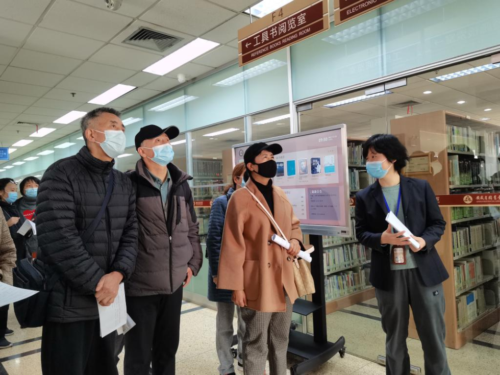 圖書館里的志愿者老師帶領老人游覽圖書館,并用英語進行講解。新華社記者汪海月攝
